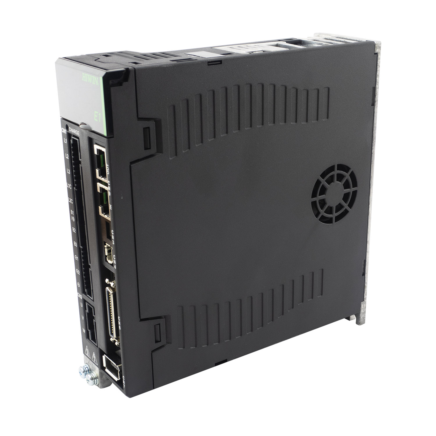 Серводрайвер серии E1 предназначен для работы с серводвигателем мощностью до 0,4 кВт и энкодером с разрешением 23 бит. Может работать с внешним контроллером в режимах задания позиции, скорости, момента или автономно в соответствии с программой, написанной пользователем. Режим управления преобразователем - векторная ШИМ. Запитывается драйвер от 1 или 3 фаз 220В. Для настройки привода на передней панели имеется 7 сегментный дисплей с элементами управления и USB разьем для настройки с ПК. Для управления используется интерфейс etherCAT(CoE). Драйвер имеет выход эмулятора энкодера с настраиваемой электронной редукцией. Поддерживаются квадратупные энкодеры, а с помощью ESC можно подключать также аналоговые (SIN/COS) и цифровые (BiSS-C, EnDat 2.1/2.2, Tamagawa) энкодеры, PTC термодатчики и датчики Холла. У драйвера имеется 10 входов, 5 выходов общего назначения и один вход АЦП 16бит. Драйвер поддерживает: