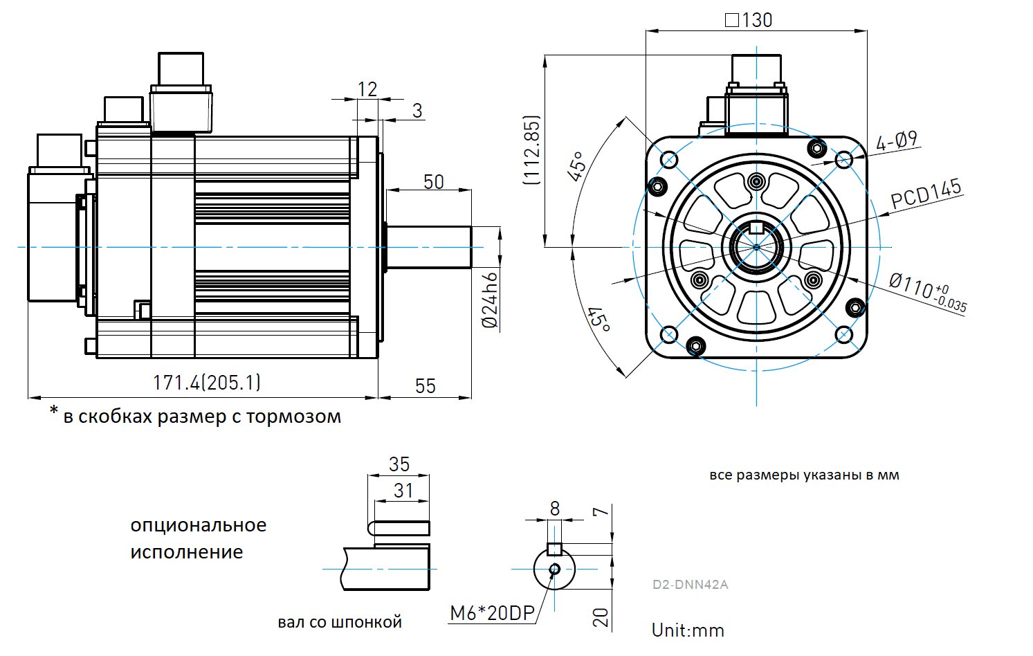 Серводвигатель FR-MM-2K-2-0-6-13-D относится к серии сервоприводов D2. Основные технические характеристики двигателя приведенные в таблице ниже. Двигатель имеет встроенный 17 битный энкодер. Степень защиты - IP65 (кроме вала и разьемов). Вал двигателя под шпонку, с сальником, диаметром 24мм.