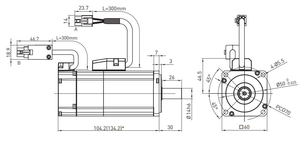 Серводвигатель EM1-C-M-40-2-B-E-0-D относится к серии сервоприводов E1. Основные технические характеристики двигателя приведенные в таблице ниже. Двигатель имеет встроенный 23 битный инкрементальный энкодер, оснащен электромагнитным тормозом. Степень защиты - IP65 (разьемы IP20, вал IP40). Вал двигателя под шпонку, с сальником, диаметром 14мм.