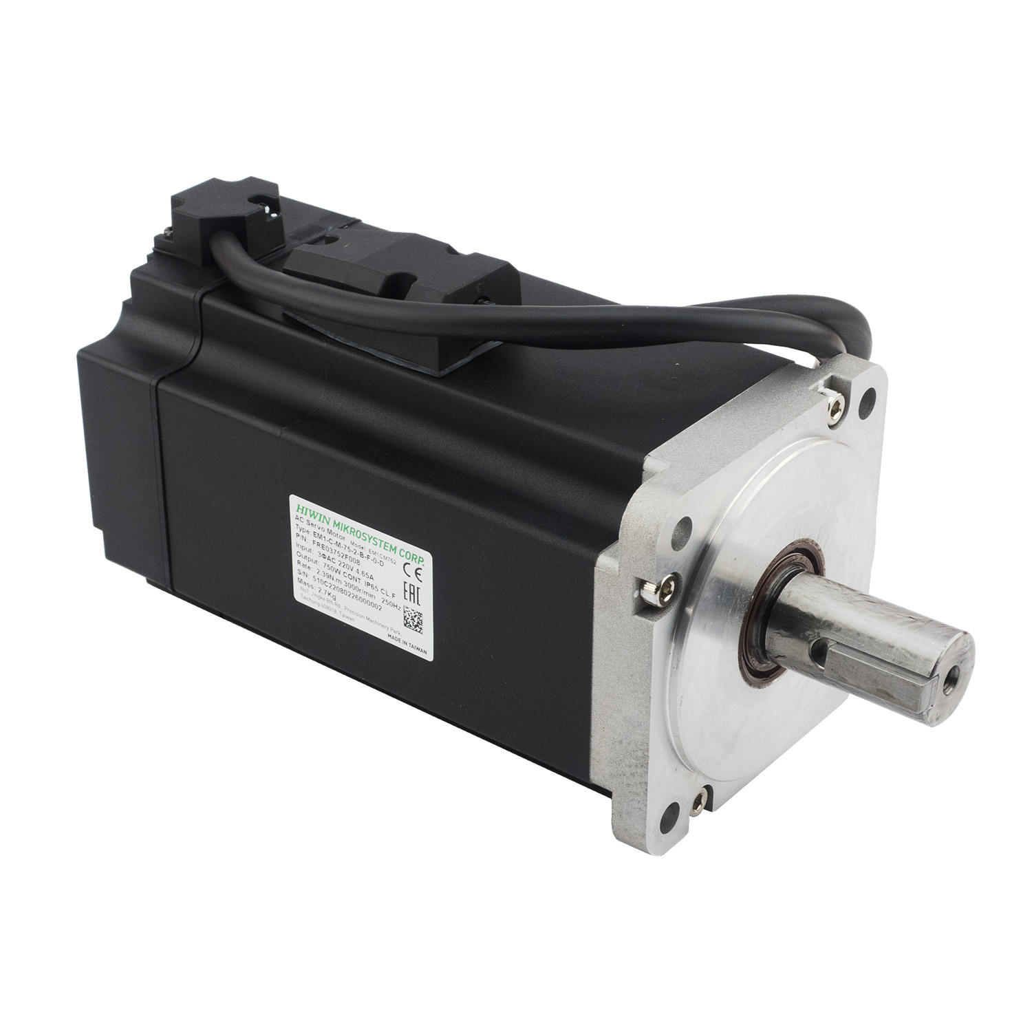 Серводвигатель EM1-C-M-75-2-B-F-0-D относится к серии сервоприводов E1. Основные технические характеристики двигателя приведенные в таблице ниже. Двигатель имеет встроенный 23 битный абсолютный энкодер, оснащен электромагнитным тормозом. Степень защиты - IP65 (разьемы IP20, вал IP40). Вал двигателя под шпонку, с сальником, диаметром 19мм.