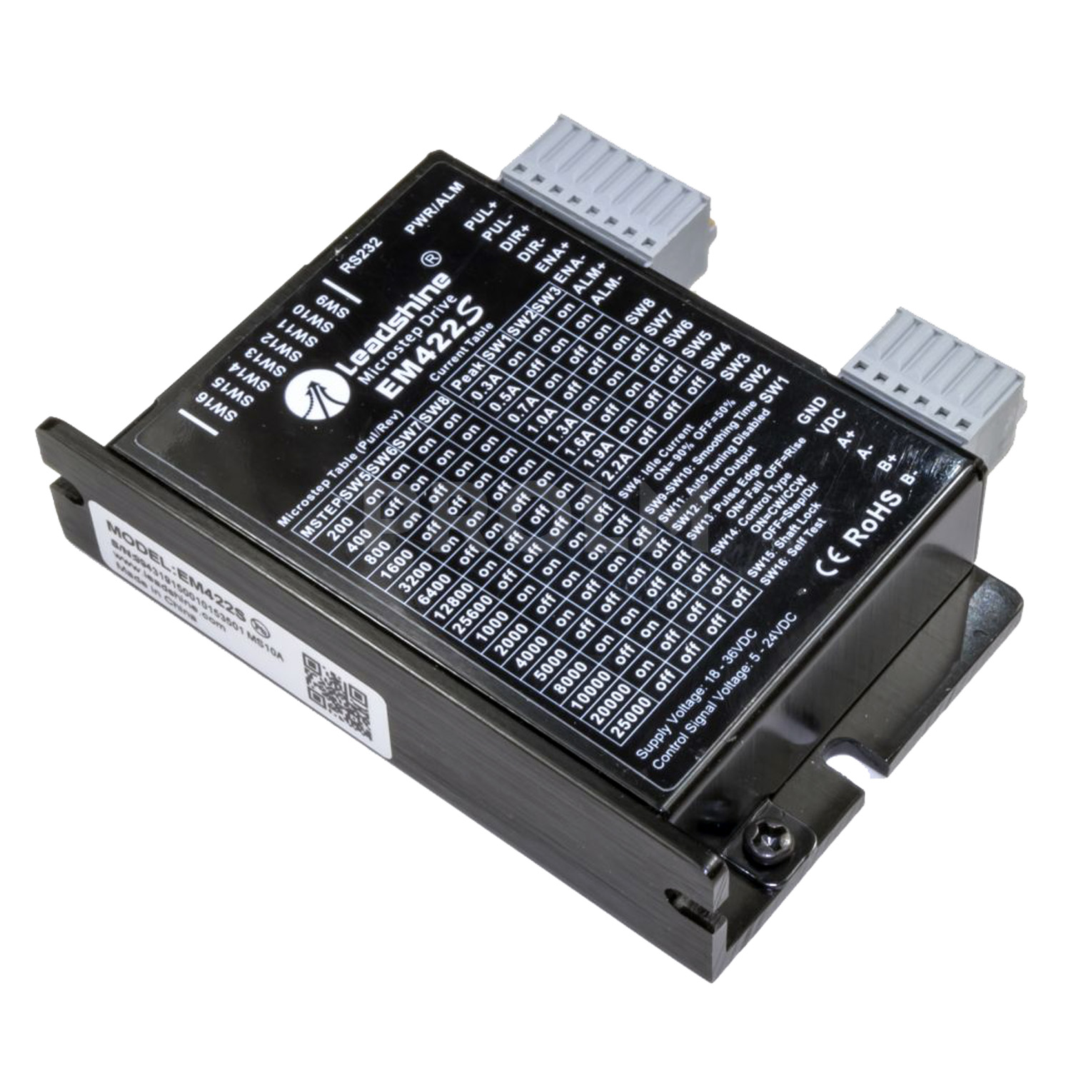 Leadshine EM422S - новый цифровой шаговый драйвер разработанный на основе серии DM. Драйвер по прежнему прост в настройке, имеет аналогичное исполнение, позволяет достичь высокой точности и надежности в работе. Весь функционал предыдущей серии также сохранен.