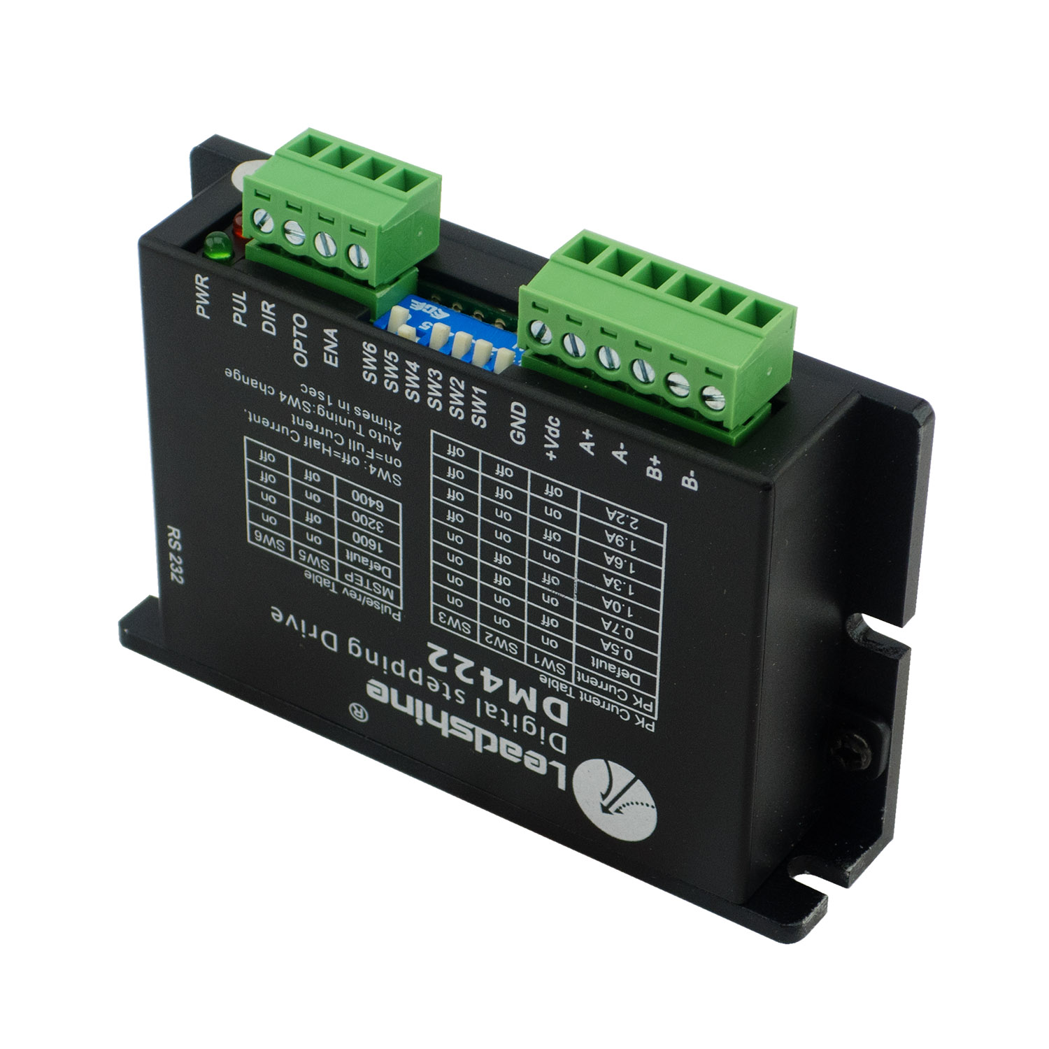 Leadshine DM422 - это универсальный, полностью цифровой шаговый драйвер, основанный на DSP с улучшенным алгоритмом управления. Обеспечивает уникальный уровень плавности системы, оптимальный крутящий момент и нулевую нестабильность в среднем диапазоне скоростей.