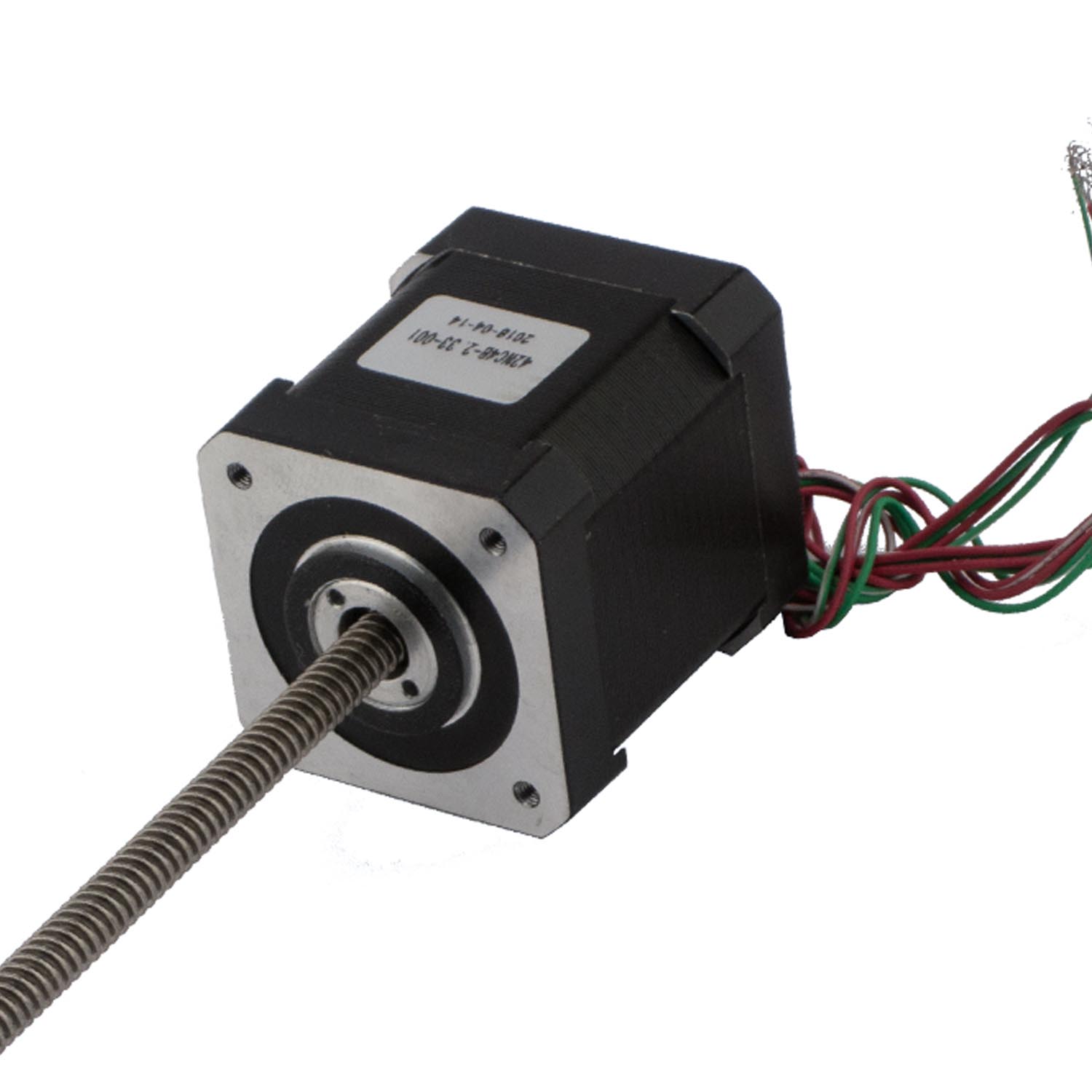 Двигатель актуатора имеет стандартный типоразмер NEMA 17, исполнение со свободным штоком. Вал двигателя полый, с внутренней гайкой, при вращении которой которой приводится в движение винт. Подвижный винт актуатора диаметром 6,35мм. Механические характеристики актуатора приведены в таблице ниже: