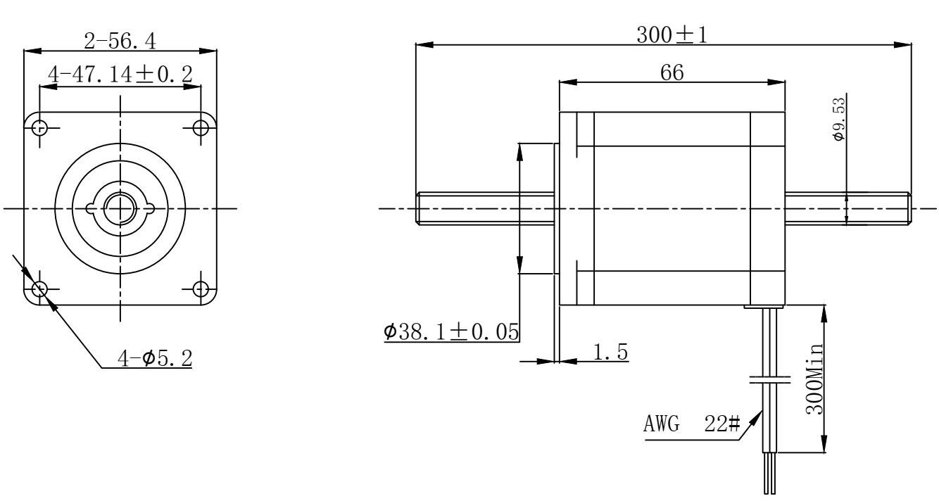 Двигатель актуатора имеет стандартный типоразмер NEMA 23, исполнение со свободным штоком. Вал двигателя полый, с внутренней гайкой, при вращении которой которой приводится в движение винт. Подвижный винт актуатора диаметром 9,53мм. Механические характеристики актуатора приведены в таблице ниже: