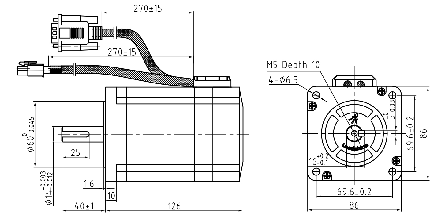 Двигатель имеет стандарный типоразмер NEMA 34, вал диаметром 14мм. Его механические характеристики приведены в таблице ниже: