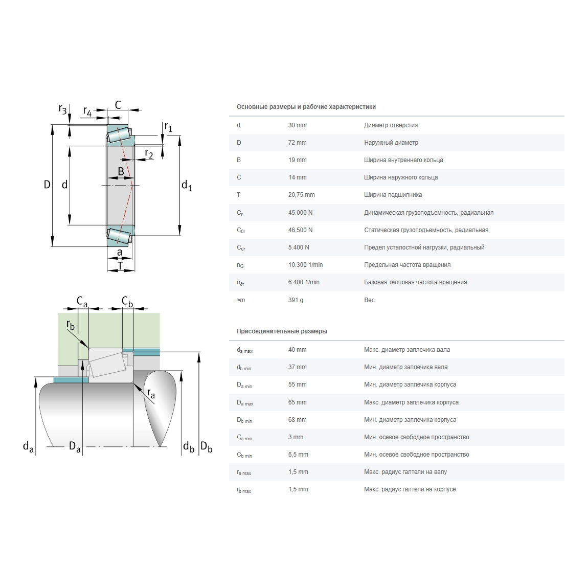 - способность выдерживать комбинированные нагрузки: коническая форма роликов и наклонные дорожки качения позволяют подшипнику эффективно воспринимать осевые и радиальные нагрузки одновременно;