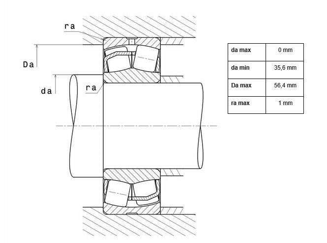 - минимальный диаметр буртика вала (da min): 35,6 мм;