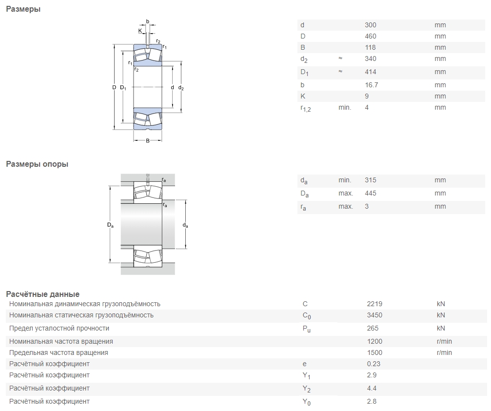 | Номинальная статическая грузоподъёмность | C0 | 3 450 kN |