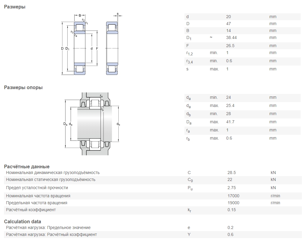 | Номинальная динамическая грузоподъёмность | C | 28.5 kN |