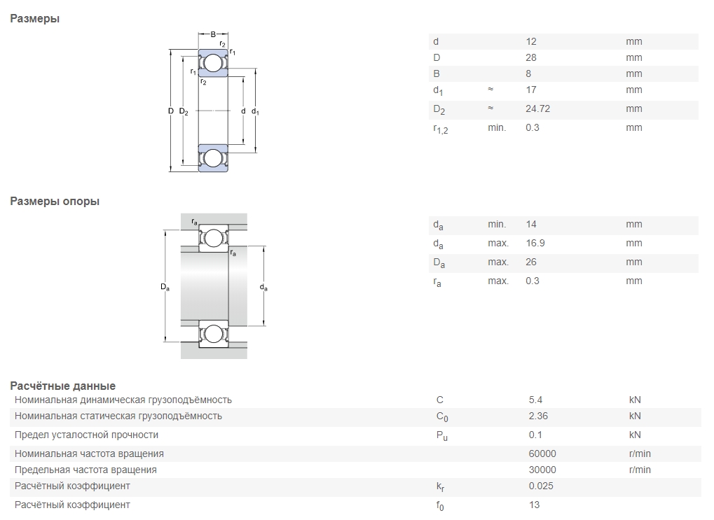 Радиальный самоустанавливающийся шариковый подшипник 6001-2Z/C3 производства компании SKF.