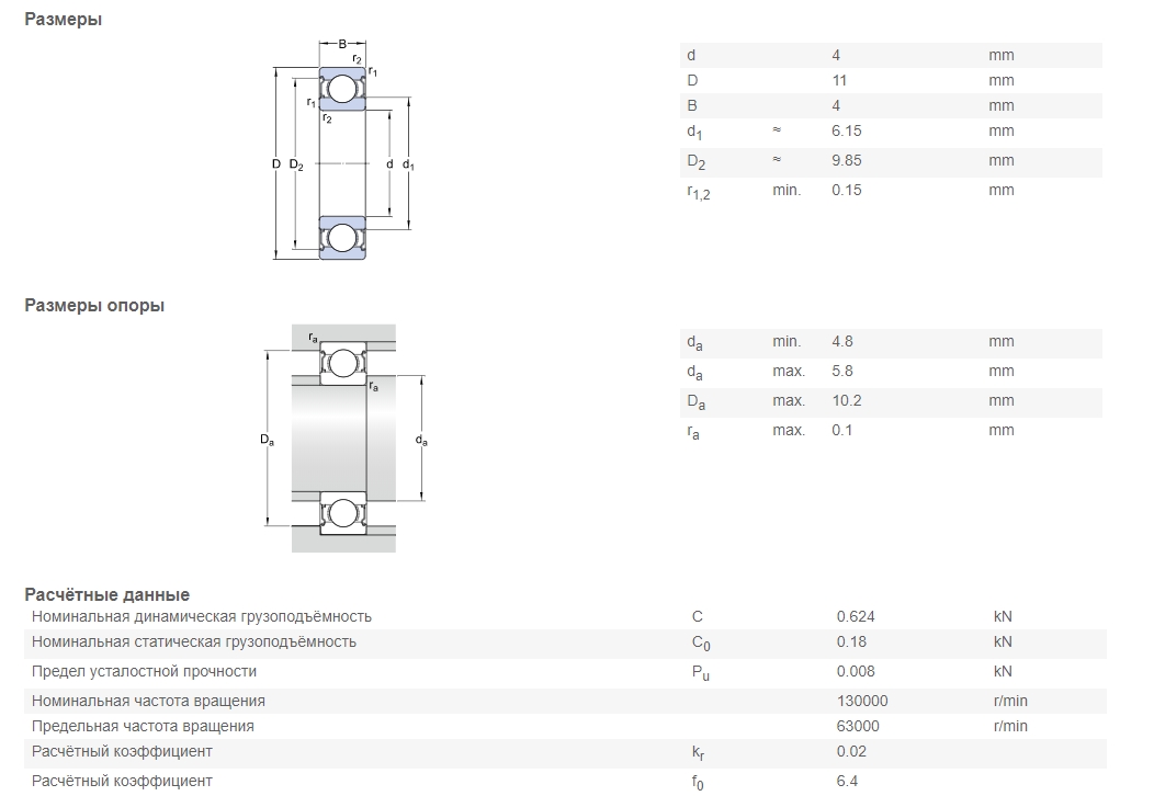 Радиальный шариковый подшипник 619/4-2Z производства компании SKF. Внутренний диаметр - 4 мм, наружный диаметр - 11 мм, ширина - 4 мм. Масса изделия - 0,002 кг. Гарантийный срок - 12 месяцев с момента покупки (при обязательном соблюдении технологии монтажа, режима и условий эксплуатации, предусмотренных производителем).