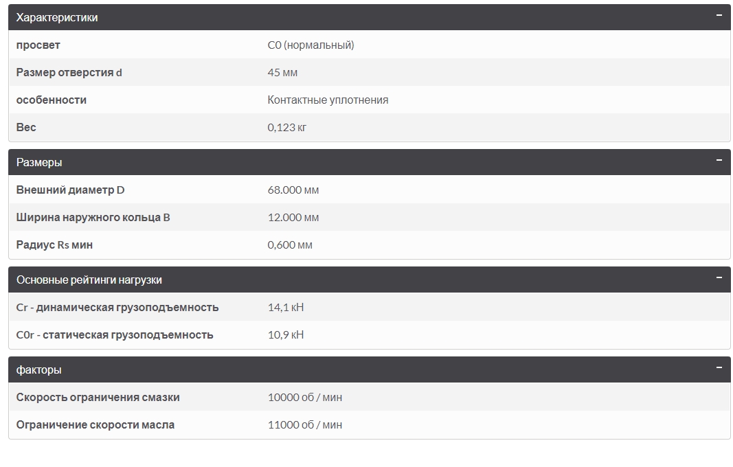 - тип подшипника: 2RS (закрытый подшипник с уплотнениями с обеих сторон);