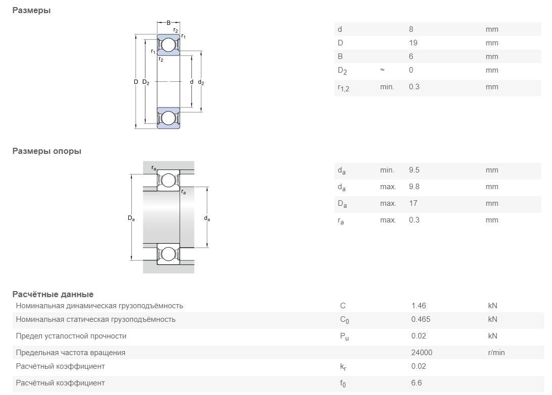 Радиальный шариковый подшипник 619/8-2RS1 производства компании SKF. Внутренний диаметр - 8 мм, наружный диаметр - 19 мм, ширина - 6 мм. Масса изделия - 0,007 кг. Гарантийный срок - 12 месяцев с момента покупки (при обязательном соблюдении технологии монтажа, режима и условий эксплуатации, предусмотренных производителем).