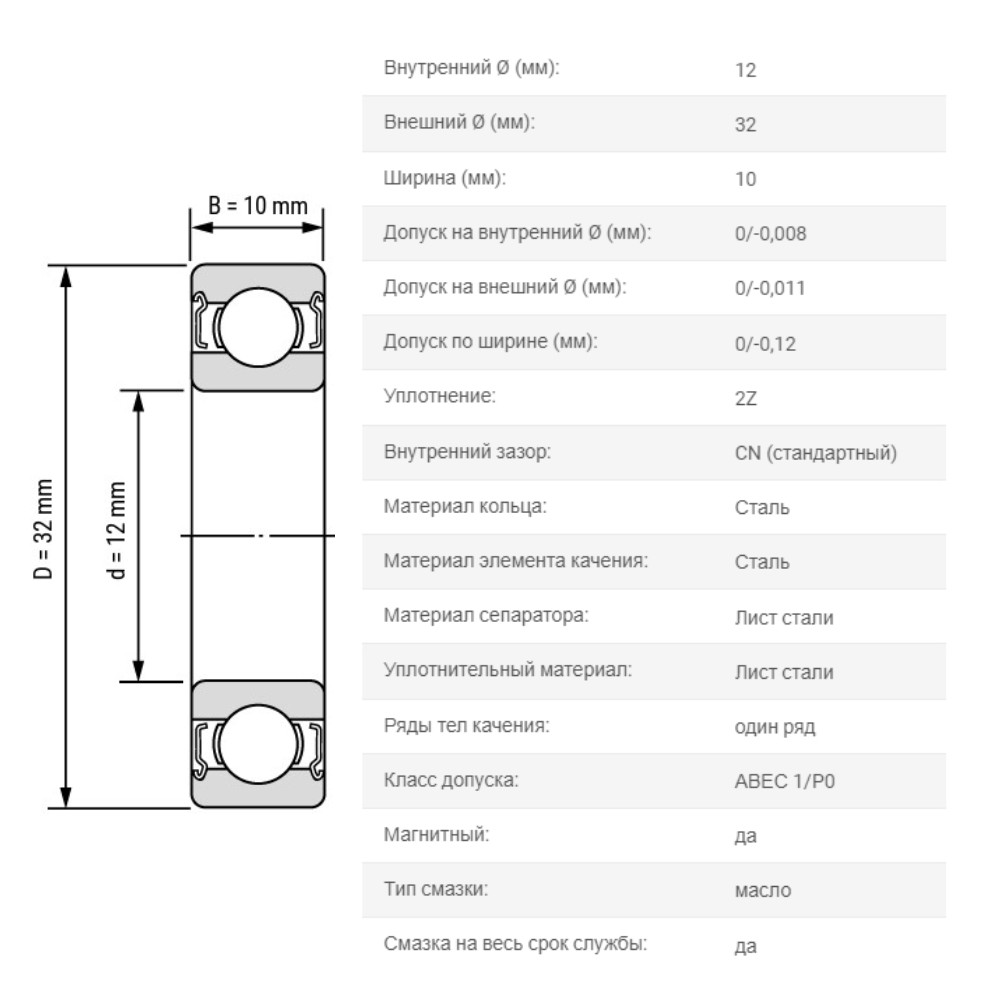 | Номинальная динамическая грузоподъёмность | C | 7.28 kN |