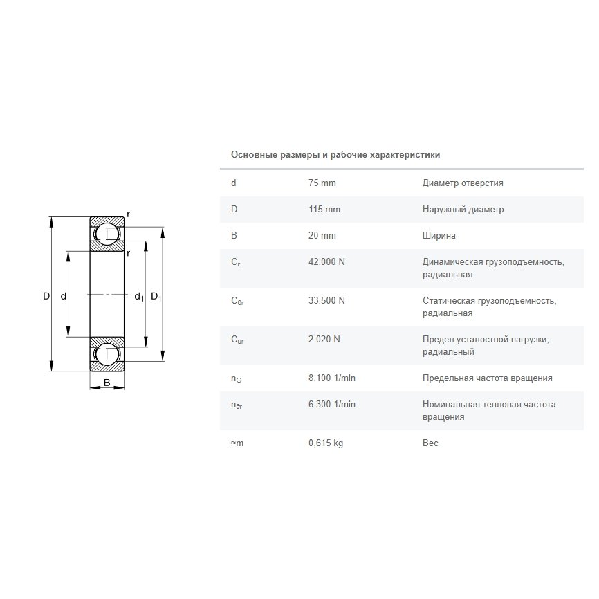| C0r | 33.500 N | Статическая грузоподъемность, радиальная |
