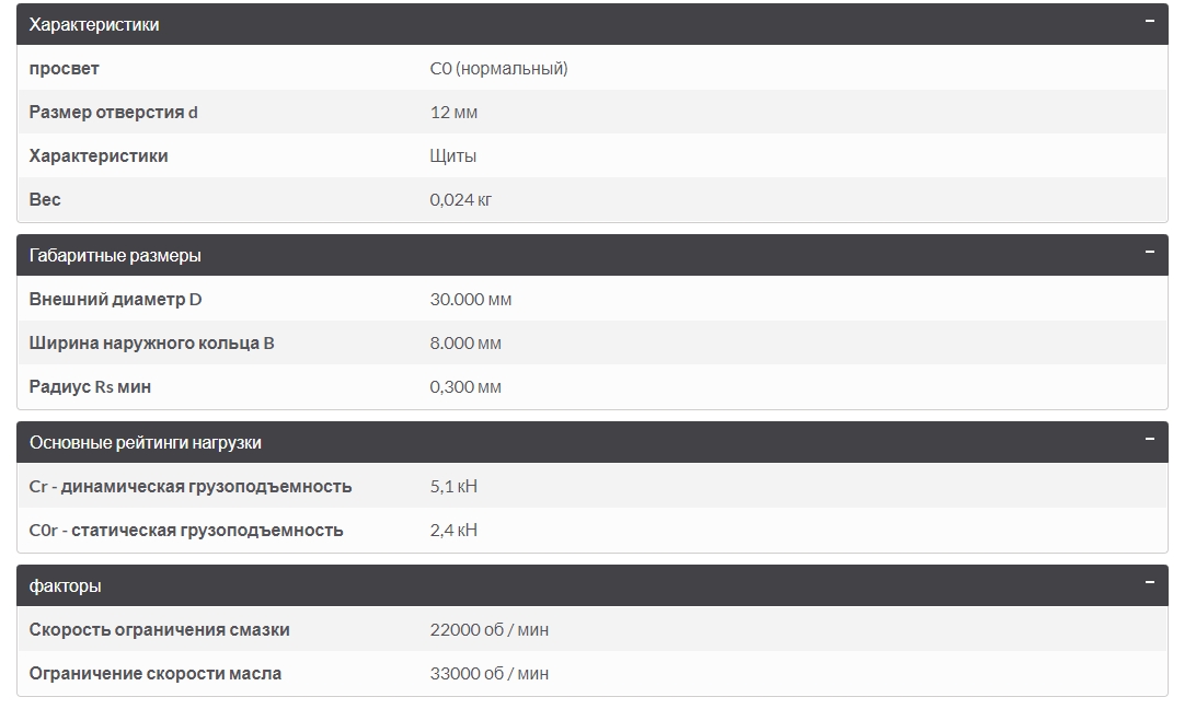 - тип подшипника: ZZ (металлические шайбы с обеих сторон);