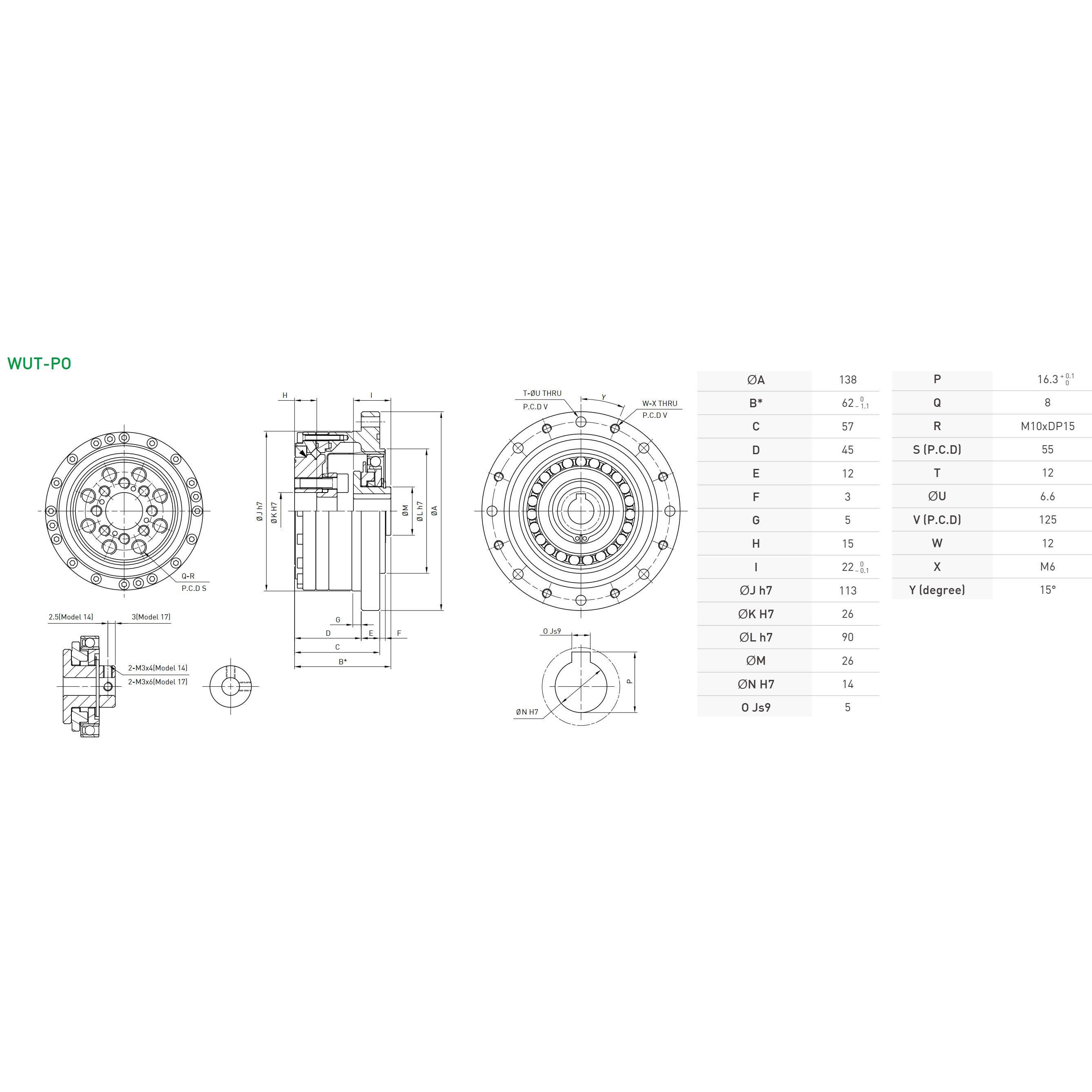 Основное преимущество волнового редуктора HIWIN WUT-S-32-50-PO заключается в минимальном угловом люфте, компактности размеров и высокой плавностью хода.