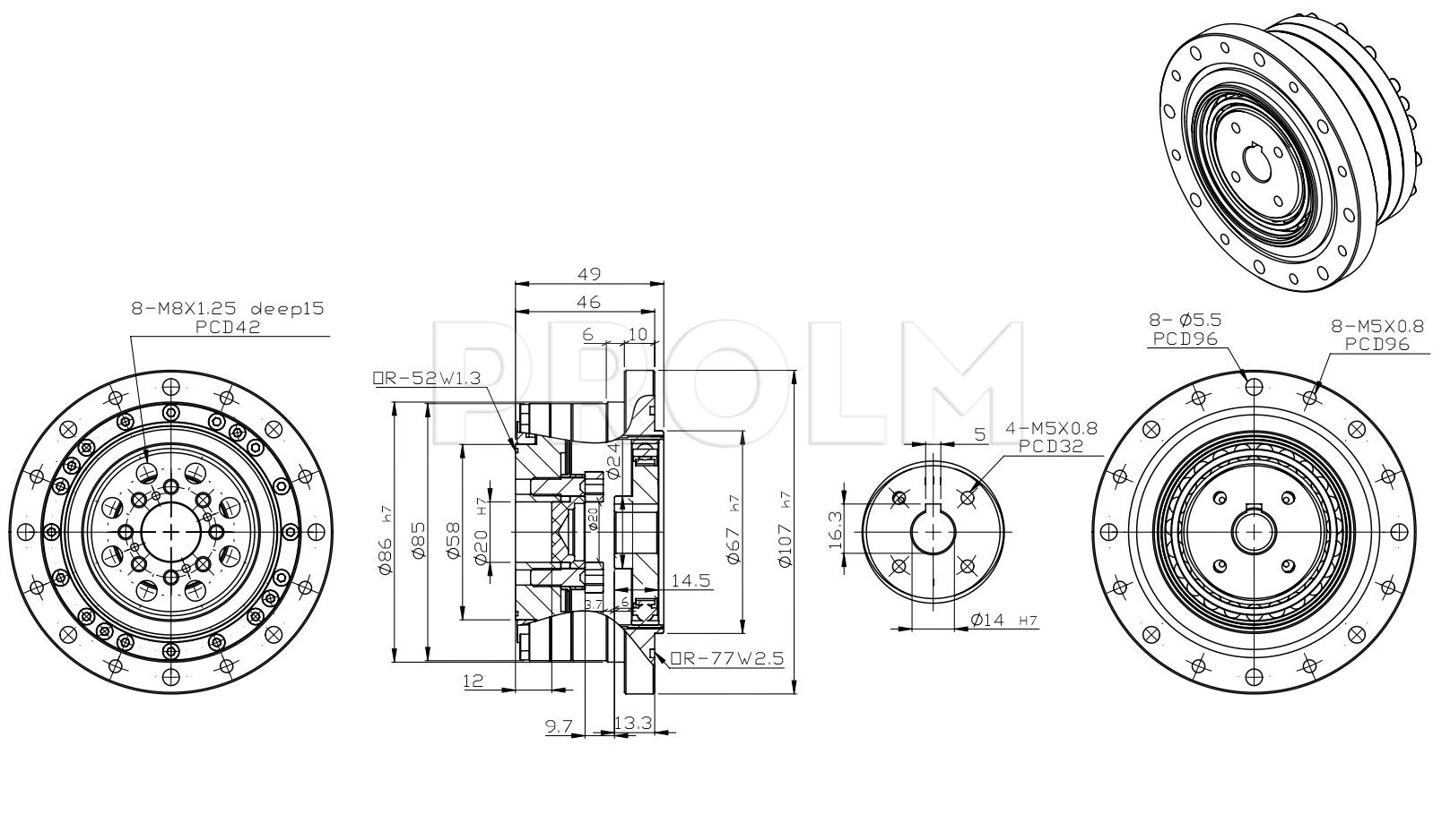 Основное преимущество волнового редуктора ARTNC DSF25-AK-50-14 заключается в минимальном угловом люфте (порядка 30''), компактности размеров и высокой плавности хода.