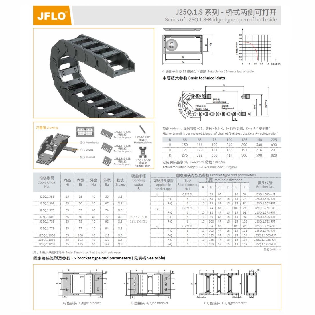 Концевые соединители серии JFLO J предназначены для фиксации, соединения и закрепления кабель-каналов J серии на станках, автоматических линиях и других промышленных установках. Они обеспечивают устойчивость и точное соединение звеньев, предотвращая смещение или разъединение цепи во время эксплуатации. Концевые соединители изготавливаются из прочного промышленного пластика, устойчивого к износу, маслам и вибрациям, что обеспечивает долговечность конструкции.