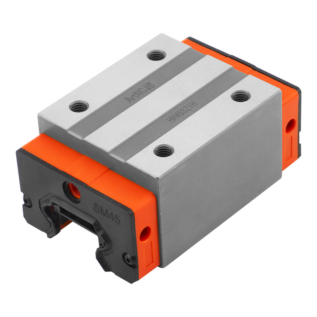 Каретка (также могут использоваться названия "блок системы линейного перемещения", "опорный блок", "направляющий блок", "танкетка", "линейный подшипник", "опорный подшипник" и прочие) ArtNC HH45SZ1H имеет следующие параметры: