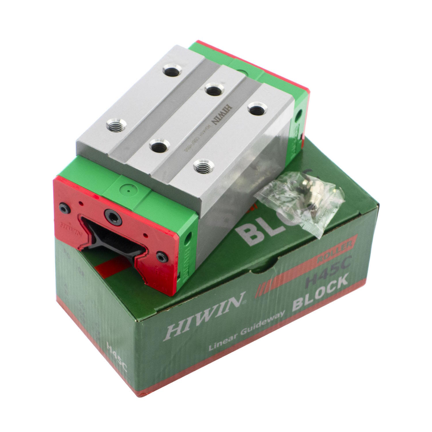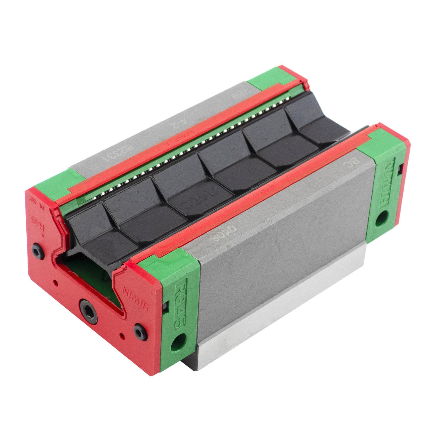 Каретка (также могут использоваться названия "блок системы линейного перемещения", "опорный блок", "направляющий блок", "танкетка", "линейный подшипник", "опорный подшипник" и прочие) HIWIN RGH45CAZAH имеет следующие параметры: