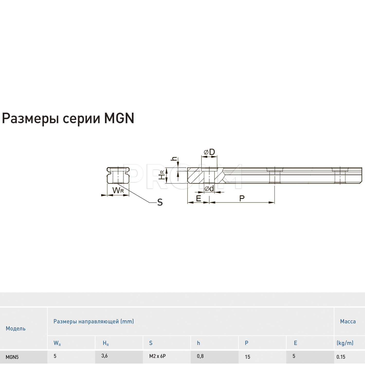 Профильная направляющая (рельс) HIWIN MGNR5R_HM для систем линейных перемещений имеет следующие характеристики: