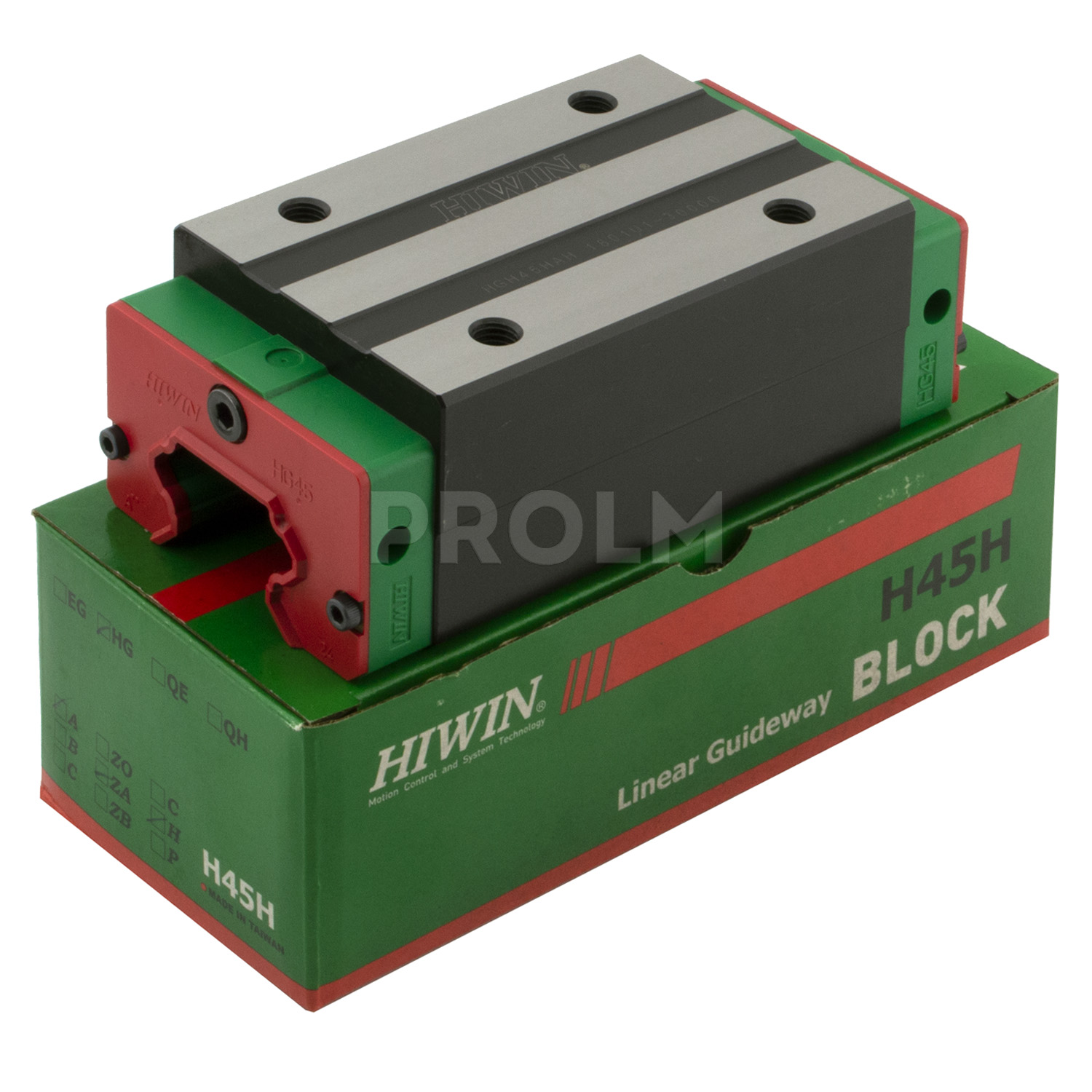 Каретка (также могут использоваться названия "блок системы линейного перемещения", "опорный блок", "направляющий блок", "танкетка", "линейный подшипник", "опорный подшипник" и прочие) HIWIN HGH45HAZ0H имеет следующие параметры: