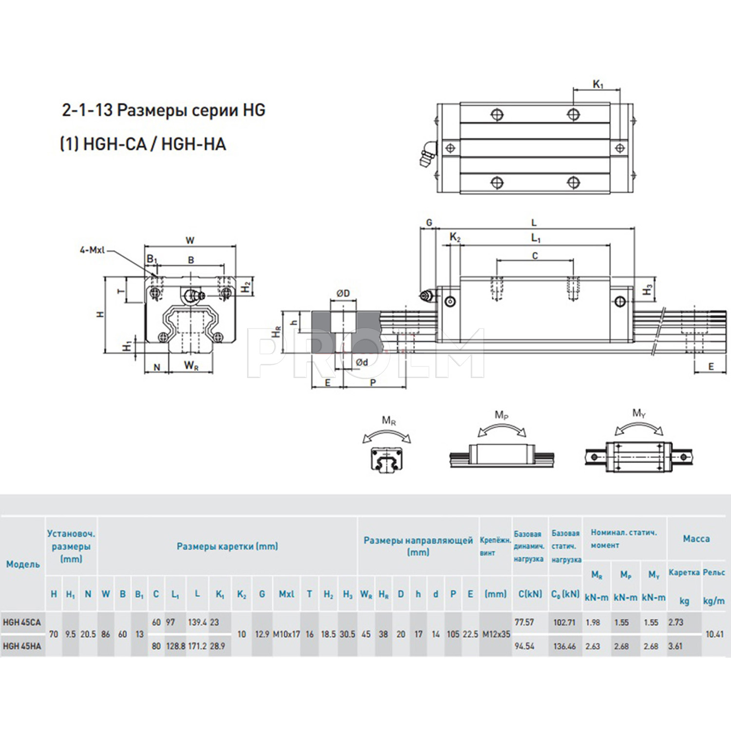 HG - серия шариковых линейных направляющих высокой грузоподъемности (Heavy Load);