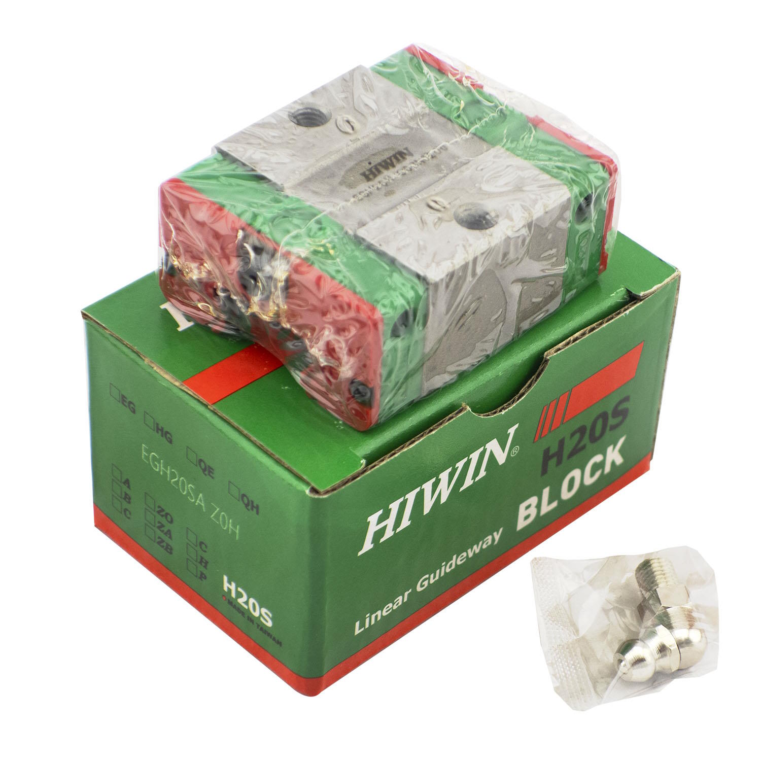 Каретка (также могут использоваться названия "блок системы линейного перемещения", "опорный блок", "направляющий блок", "танкетка", "линейный подшипник", "опорный подшипник" и прочие) HIWIN EGH20SAZ0H имеет следующие параметры: