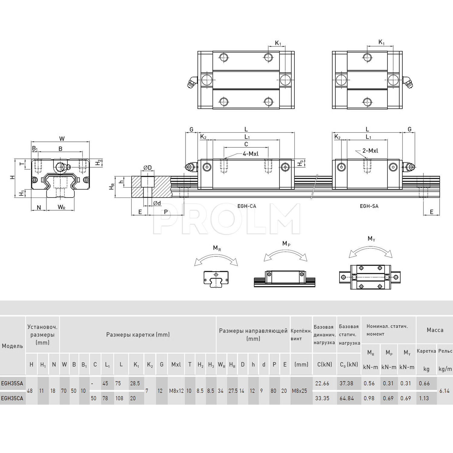 35 - типоразмер (данный параметр определяет размерную совместимость каретки и рельса с учетом серии и требуемой точности);