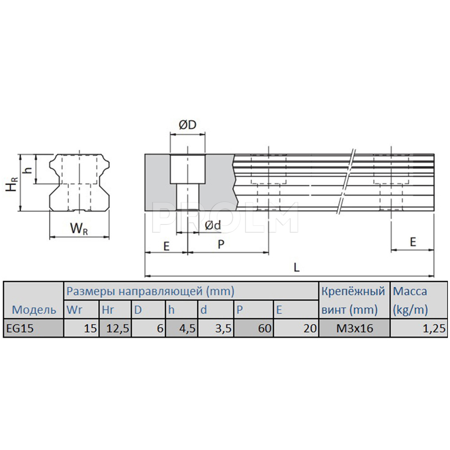 Профильная направляющая (рельс) HIWIN EGR15R_C для систем линейных перемещений имеет следующие характеристики: