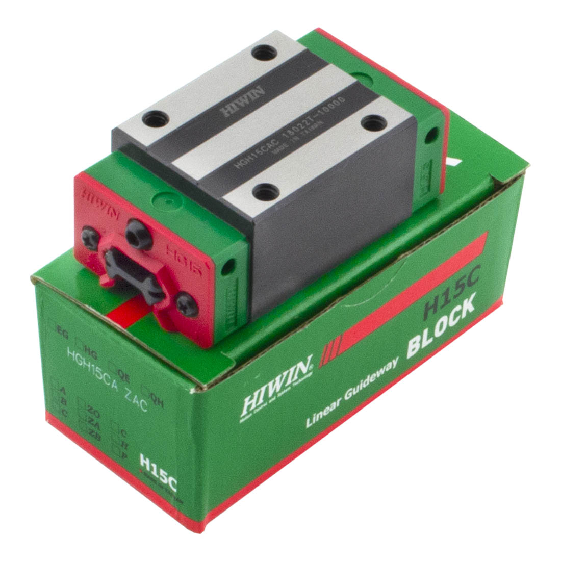 Каретка (также могут использоваться названия "блок системы линейного перемещения", "опорный блок", "направляющий блок", "танкетка", "линейный подшипник", "опорный подшипник" и прочие) HIWIN HGH15CAZAC имеет следующие параметры: