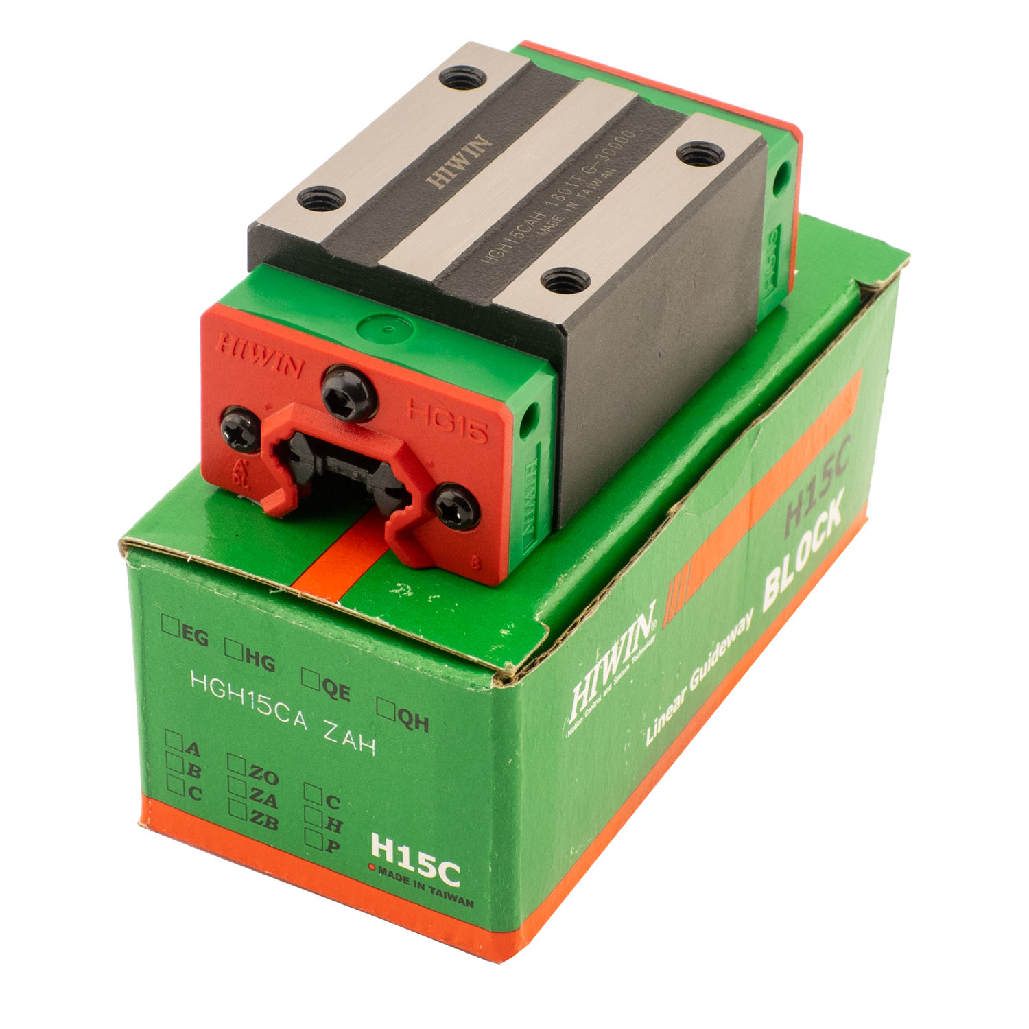 Каретка (также могут использоваться названия "блок системы линейного перемещения", "опорный блок", "направляющий блок", "танкетка", "линейный подшипник", "опорный подшипник" и прочие) HIWIN HGH15CAZAH имеет следующие параметры: