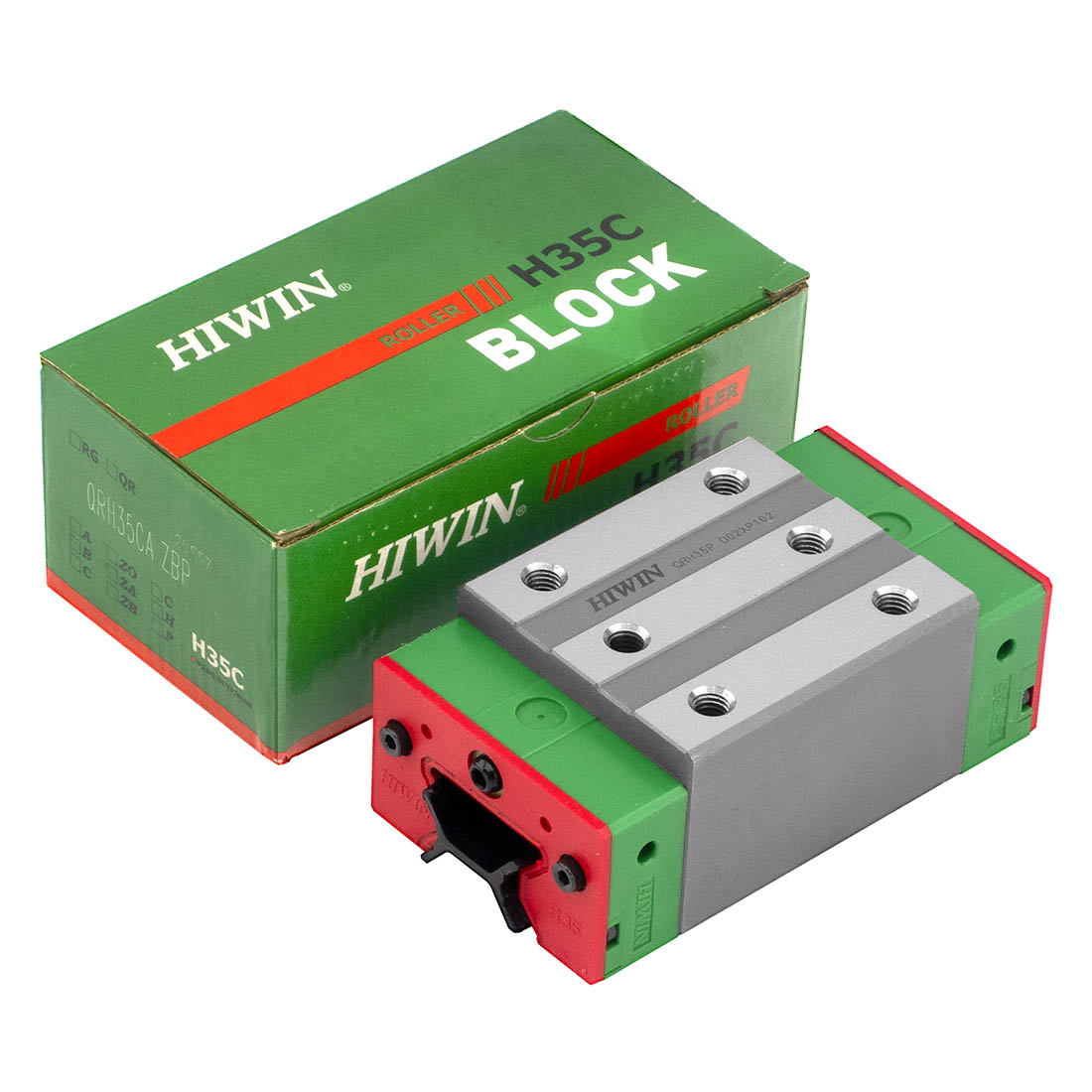 Каретка (также могут использоваться названия "блок системы линейного перемещения", "опорный блок", "направляющий блок", "танкетка", "линейный подшипник", "опорный подшипник" и прочие) HIWIN QRW45HCZBP имеет следующие параметры: