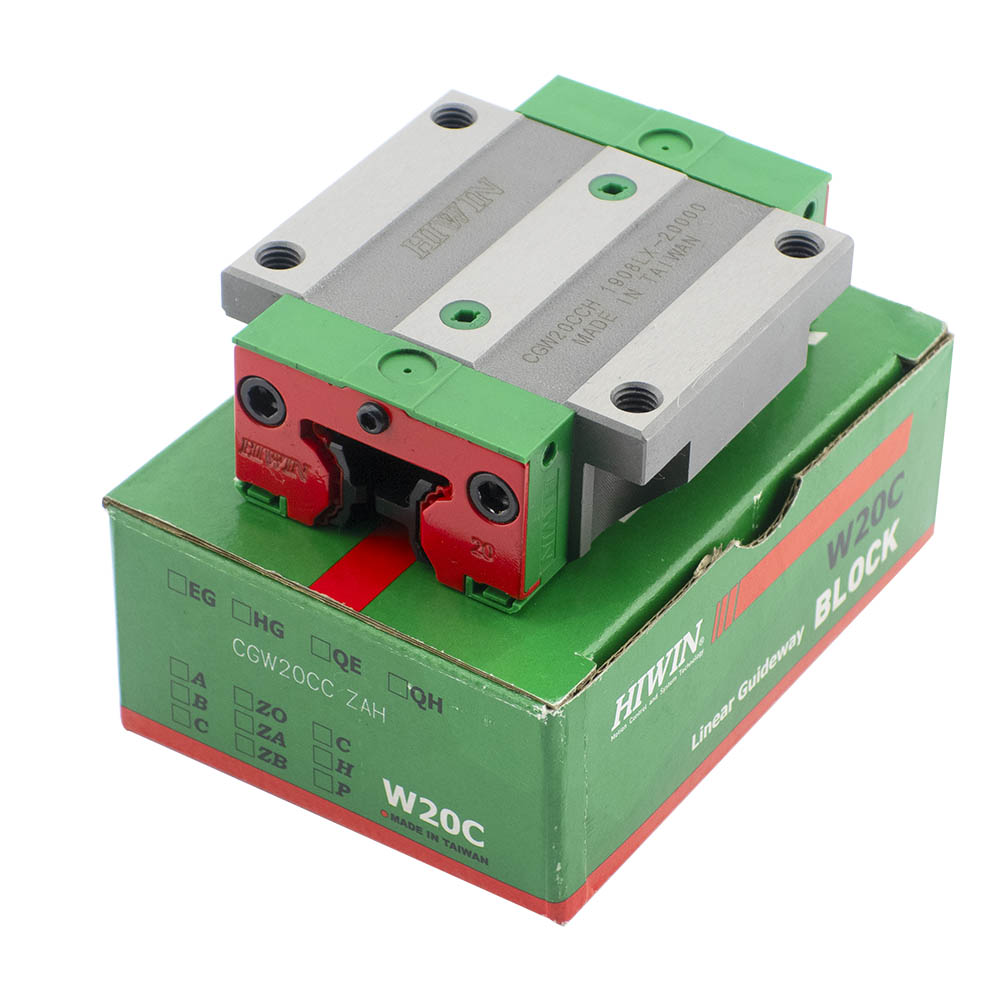 Каретка (также могут использоваться названия "блок системы линейного перемещения", "опорный блок", "направляющий блок", "танкетка", "линейный подшипник", "опорный подшипник" и прочие) HIWIN CGW20CCZAP имеет следующие параметры: