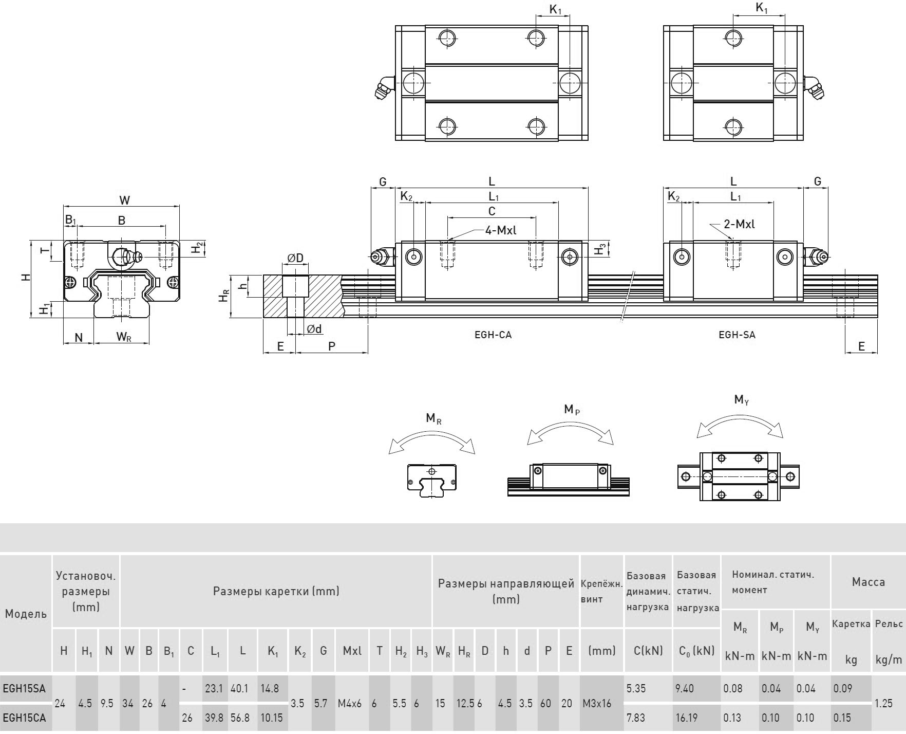 15 - типоразмер (данный параметр определяет размерную совместимость каретки и рельса с учетом серии и требуемой точности);