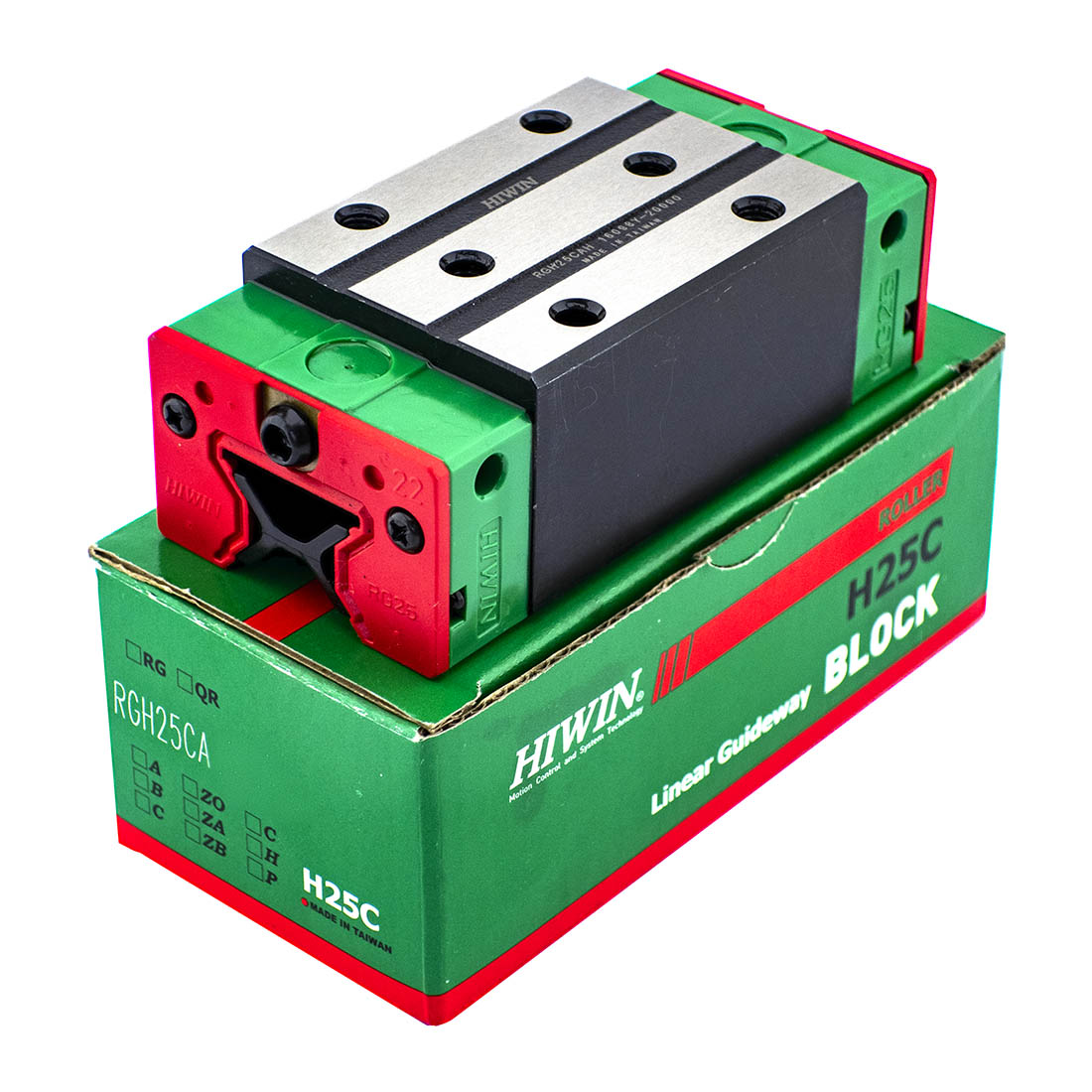 Каретка (также могут использоваться названия "блок системы линейного перемещения", "опорный блок", "направляющий блок", "танкетка", "линейный подшипник", "опорный подшипник" и прочие) HIWIN RGH25CAZ0P имеет следующие параметры: