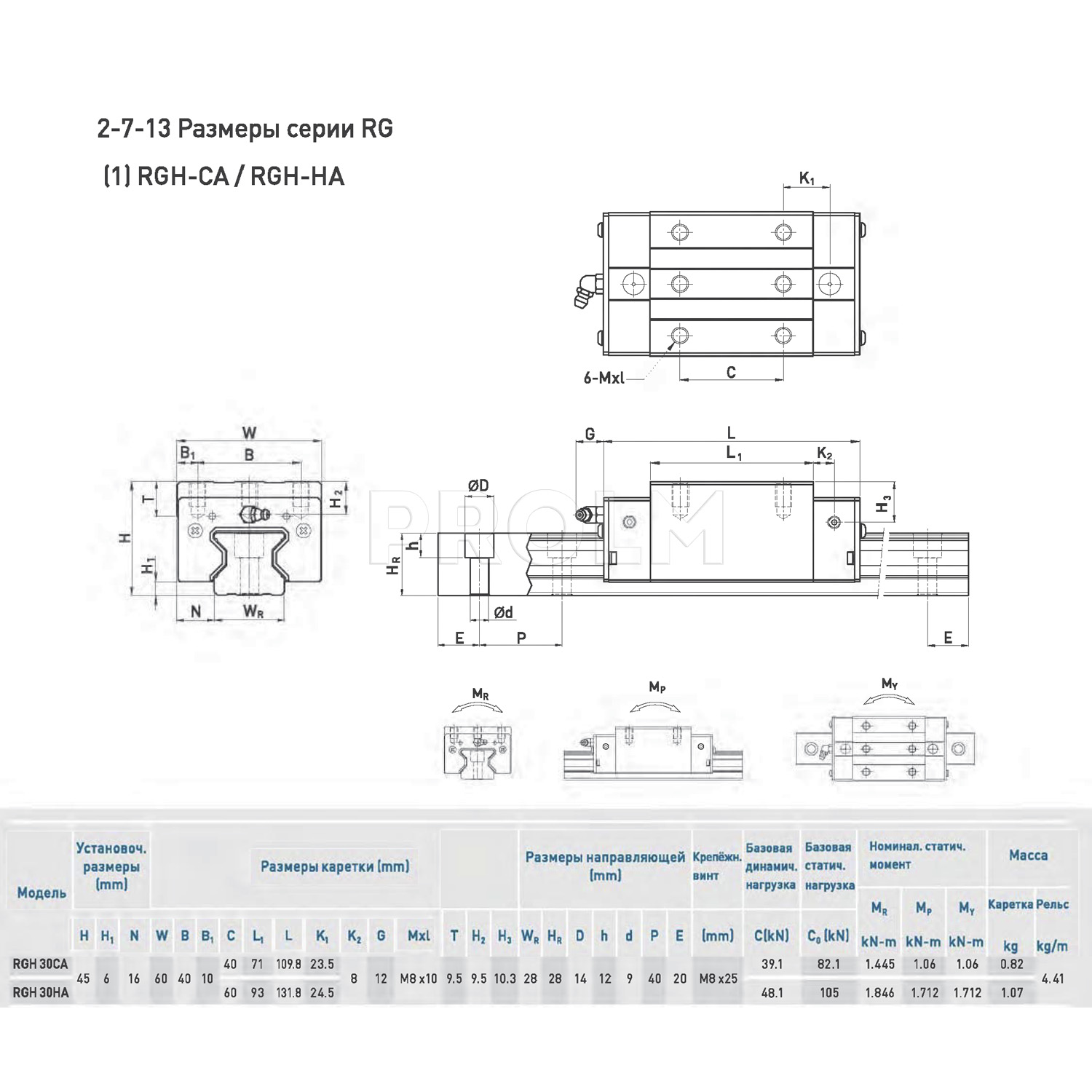 RG - серия роликовых линейных направляющих сверхвысокой жёсткости;