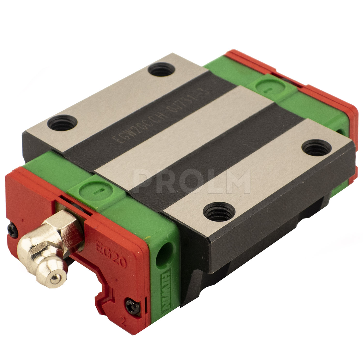 Каретка (также могут использоваться названия "блок системы линейного перемещения", "опорный блок", "направляющий блок", "танкетка", "линейный подшипник", "опорный подшипник" и прочие) HIWIN EGW20CCZ0H+DD имеет следующие параметры: