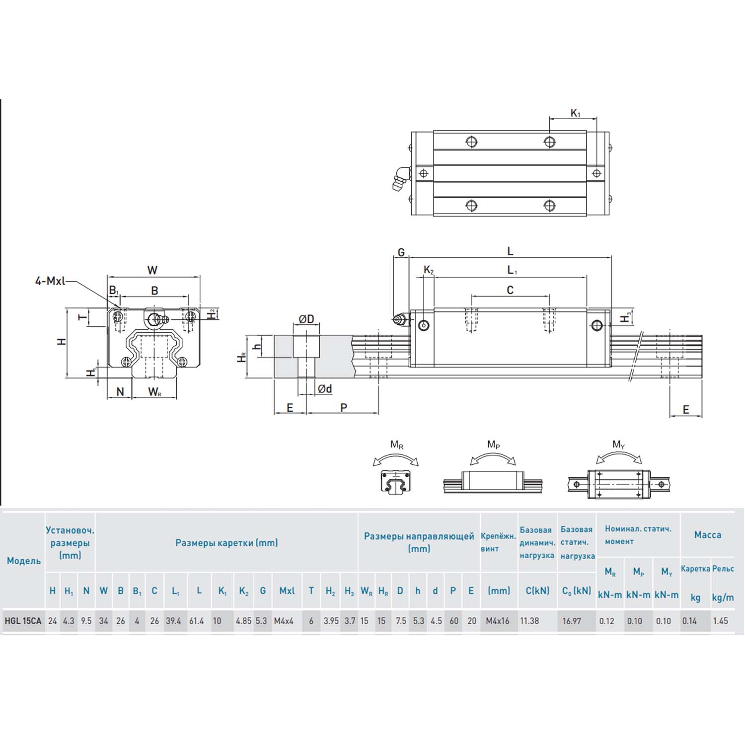 HG - серия шариковых линейных направляющих высокой грузоподъемности (Heavy Load);