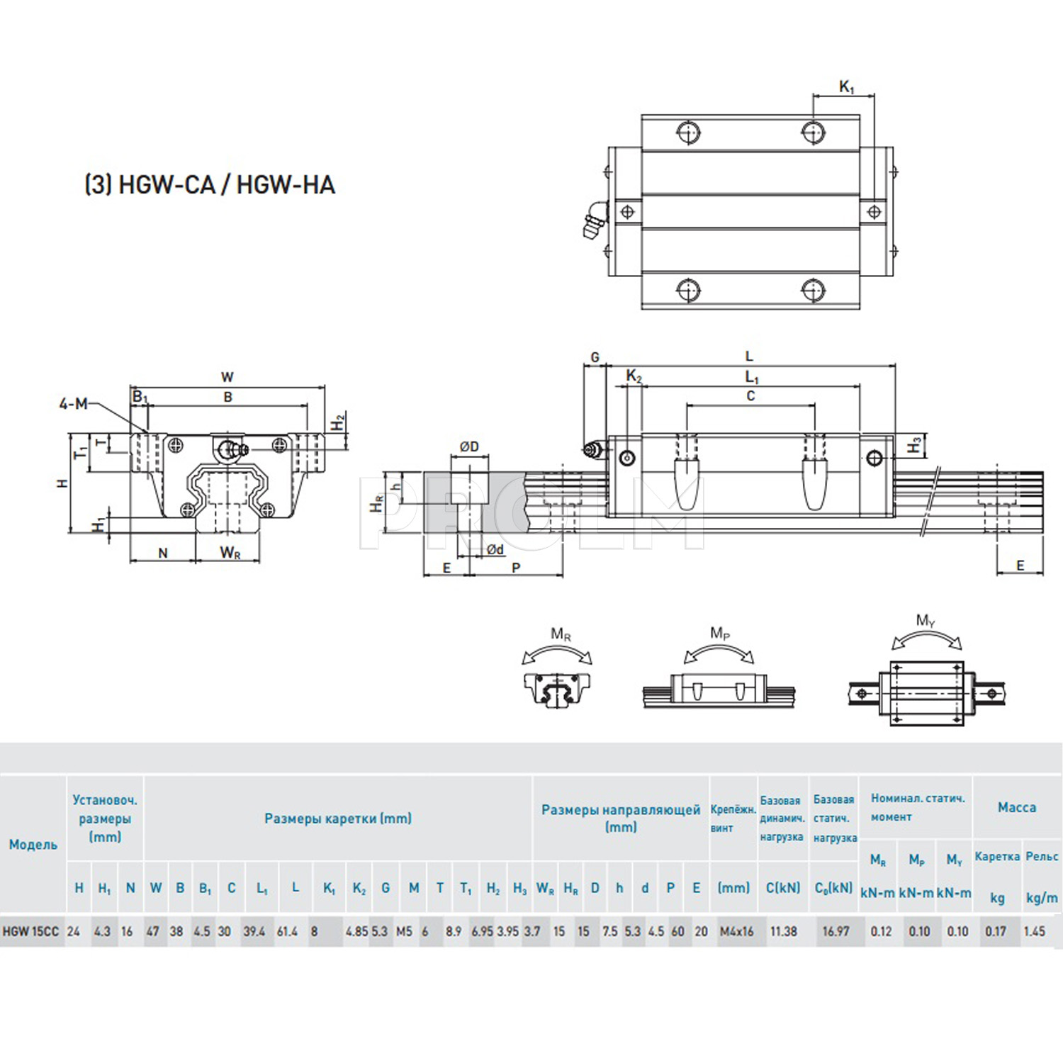 HG - серия шариковых линейных направляющих высокой грузоподъемности (Heavy Load);
