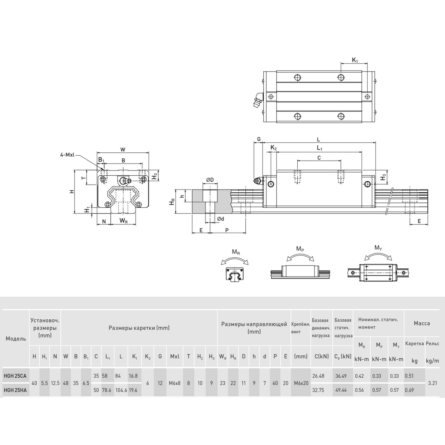 HG - серия шариковых линейных направляющих высокой грузоподъемности (Heavy Load);