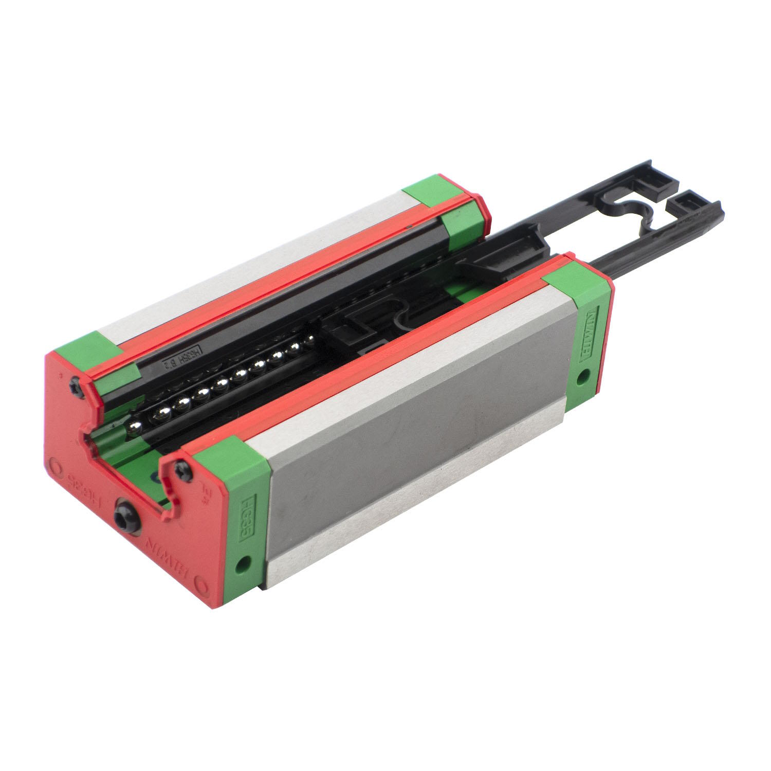 Линейные направляющие серии HG имеют высокую грузоподъемность и жесткость в сравнении с аналогичными продуктами. Четырехрядная конструкция серии позволяет выдерживать одинаковые нагрузки в радиальных и боковых направлениях, а профиль дорожки качения обеспечивает обширный контакт с шариками, что в свою очередь и способствует увеличению допустимых нагрузок и жесткости системы. Благодаря самовыравниванию каретка может нивелировать небольшие погрешности при монтаже и обеспечивает плавное линейное движение, обусловленное упругой деформацией элементов качения и смещением точек контакта. Наличие фиксатора предотвращает выпадение шариков при снятии блока с рельса. Данный тип линейных направляющих является взаимозаменяемым, то есть любые каретки и любые рельсы серии могут использоваться вместе, сохраняя точность и размерность.