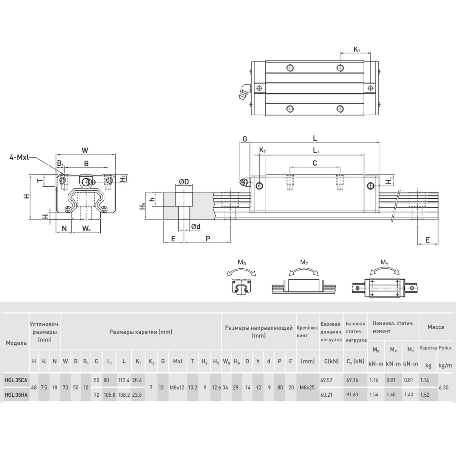 HG - серия шариковых линейных направляющих высокой грузоподъемности (Heavy Load);