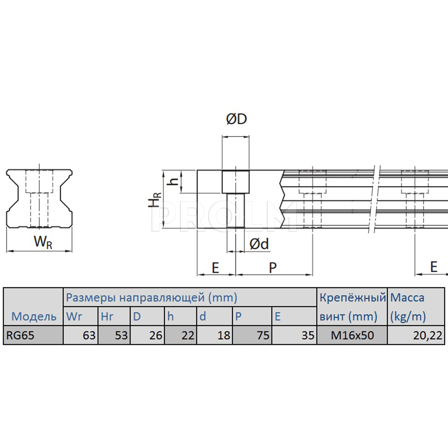 Профильная направляющая (рельс) HIWIN RGR65R_P для систем линейных перемещений имеет следующие характеристики: