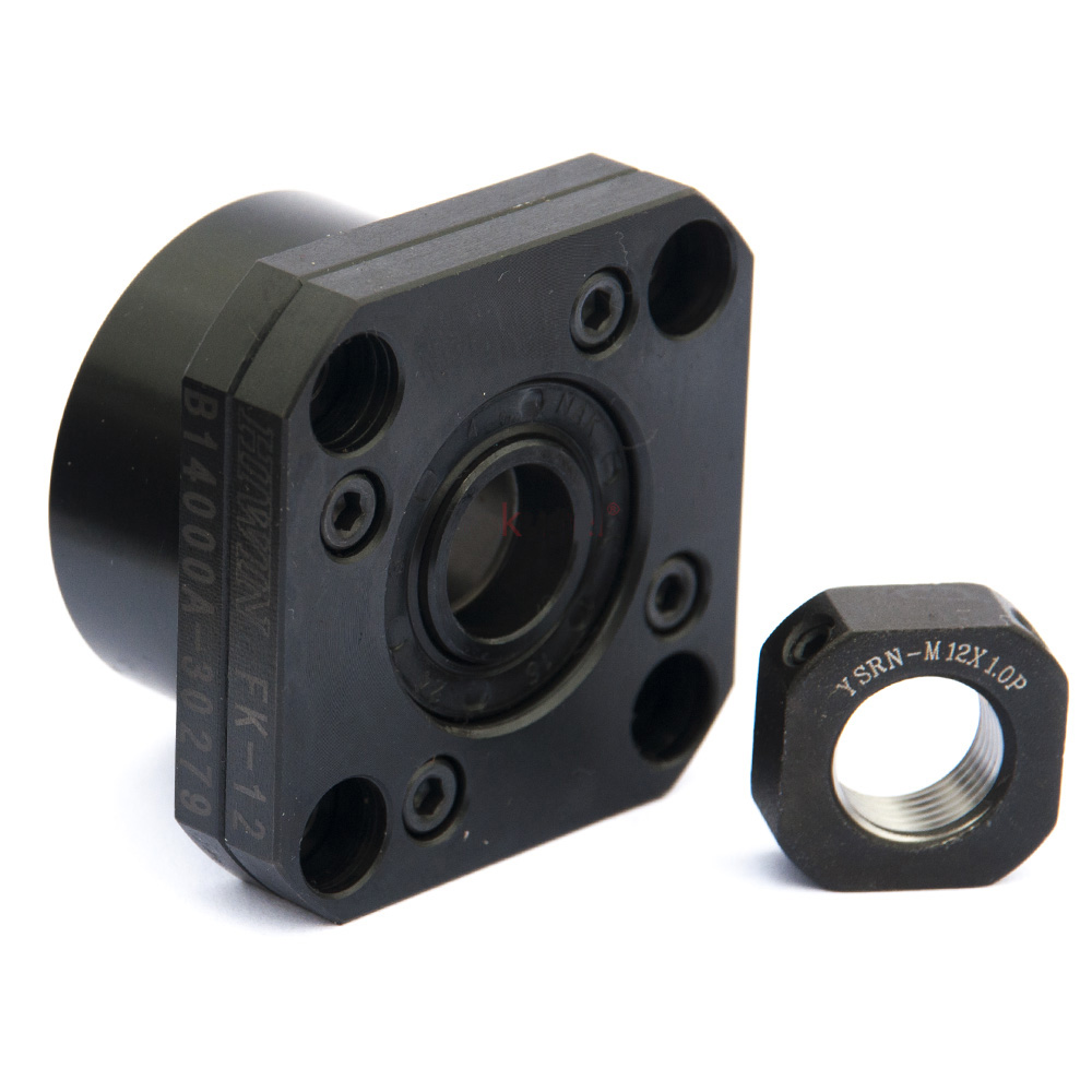 Фиксирующая опора для ШВП серии FK производства HIWIN состоит из дуплексного радиально-упорного подшипника и корпуса с монтажными отверстиями. Опора предназначена для фиксации винта ШВП в радиальном и осевом направлениях. Используется для жесткой фиксации винта ШВП с приводной стороны. Предназначена для монтажа на перпендикулярную оси винта плоскость. Является парой для опоры серии FF.