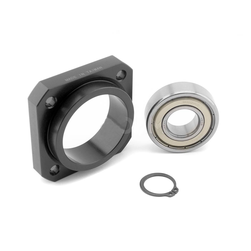 Плавающая опора для ШВП серии FF производства HIWIN состоит из радиального подшипника и корпуса с монтажными отверстиями. Опора используется для фиксации винта ШВП в радиальном направлении, не воспринимает нагрузки в осевом направлении. Предназначена для монтажа на перпендикулярную оси винта плоскость. Является парой для опоры серии FK.