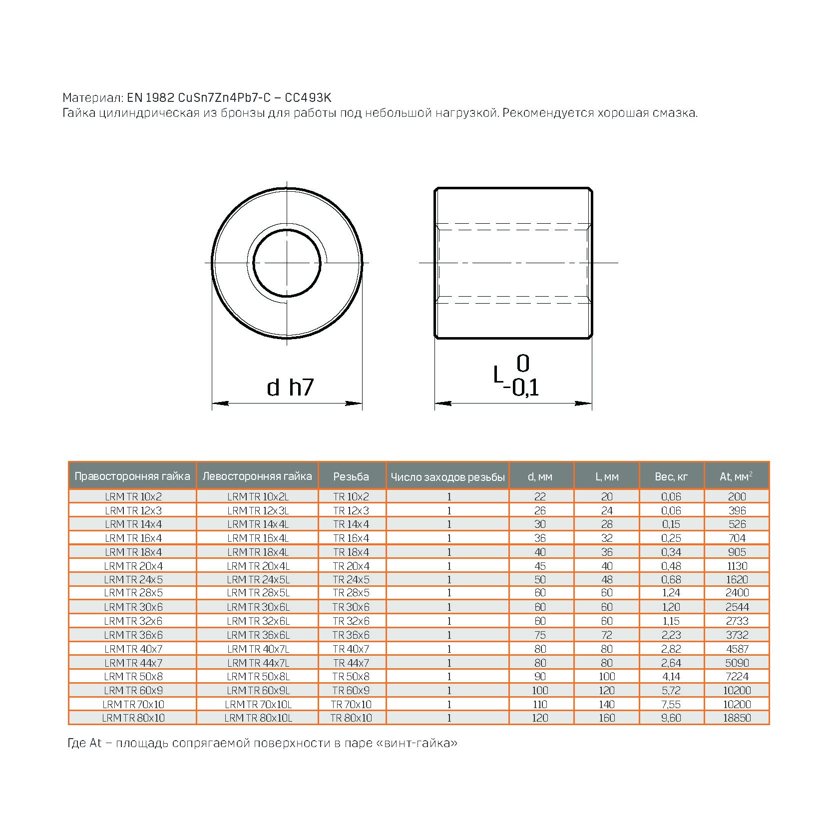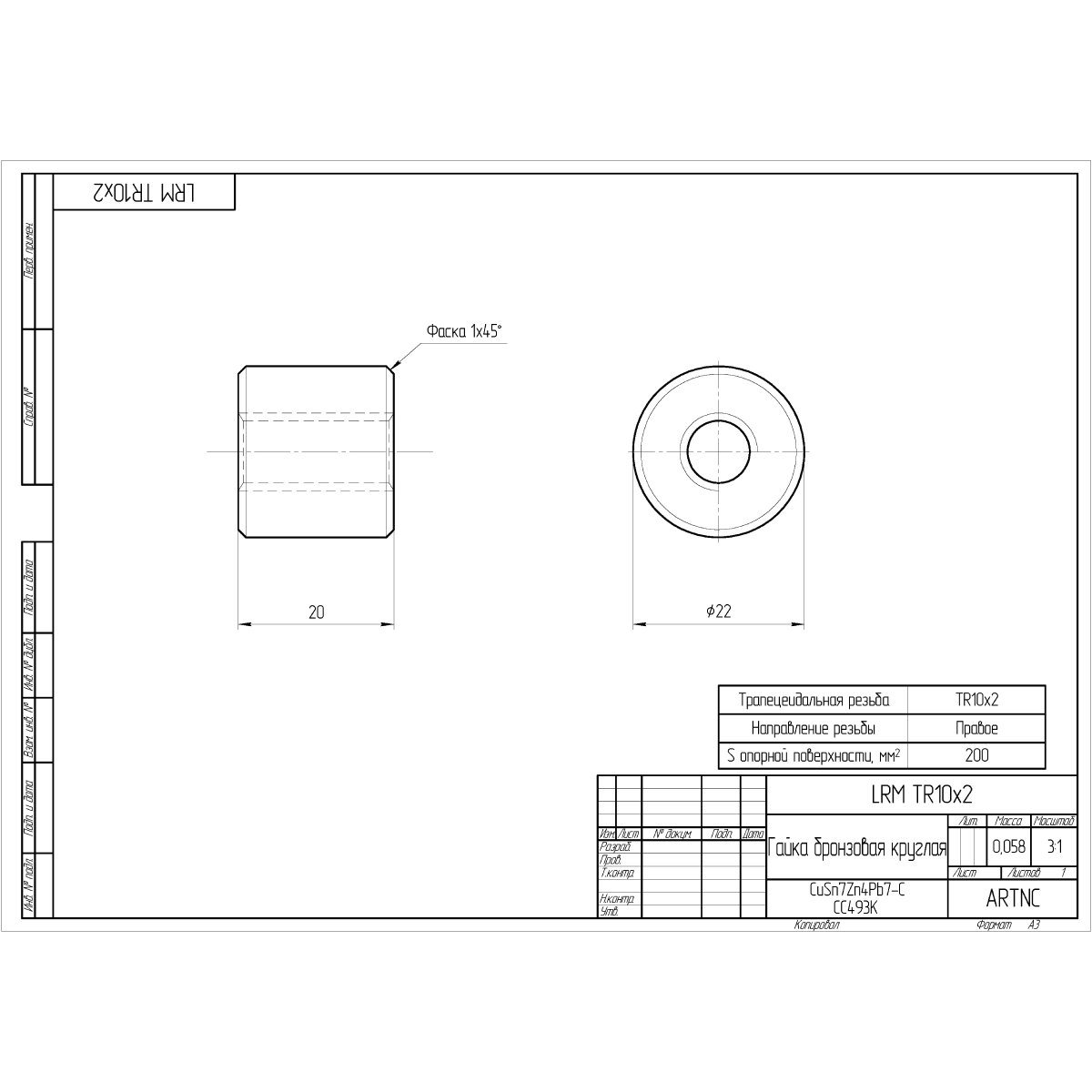 Гайка для трапецеидального винта ARTNC LRM TR 10x2 изготавливается из бронзы RG7, что обеспечивает плавное перемещение и увеличение срока службы пары "винт-гайка". Указанная система может эксплуатироваться даже при наличии значительных загрязнений.