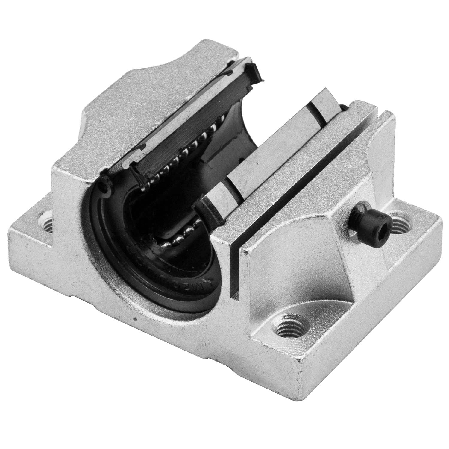 Корпус с шариковой втулкой открытого типа применяется в создании слабо нагруженных фрезерно-гравировальных станков, установок плазменной резки, систем подачи в автоматизации производства, неответственных узлах в промышленном оборудовании. Корпус изготовлен из алюминия, что облегчает вес изделия и защищает от коррозии. Альтернатива профильным линейным направляющим, но к сожалению не обладают достаточной точностью и жесткостью создаваемых систем. Данный корпус имеет возможность универсального крепеления как сверху так и снизу. Совместимы с валами на опорной рейки серий TBR, TBS соотвествующего диаметра.