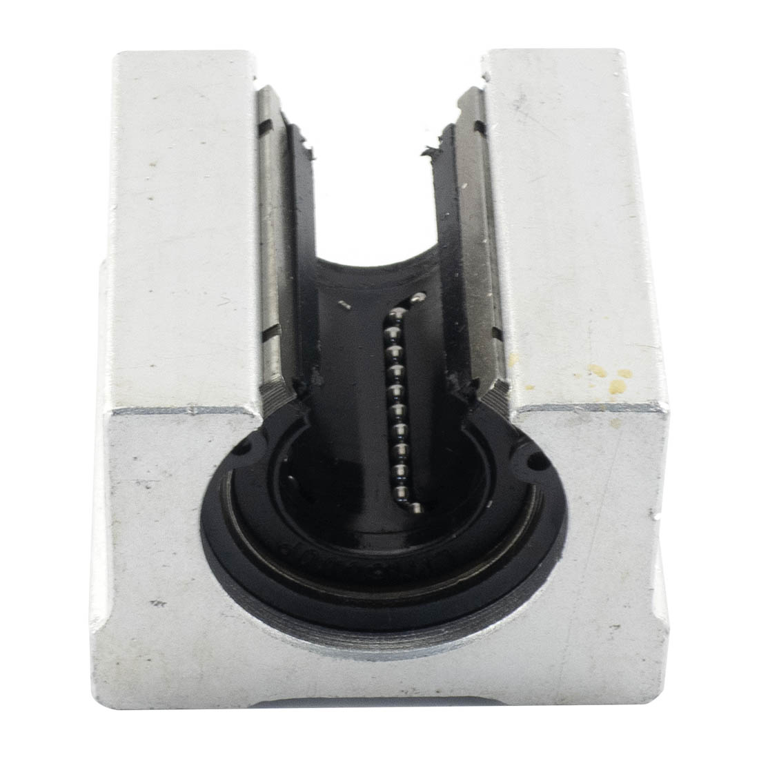 Корпус с шариковой втулкой открытого типа применяется в создании слабо нагруженных фрезерно-гравировальных станков, установок плазменной резки, систем подачи в автоматизации производства, неответственных узлах в промышленном оборудовании. Корпус изготовлен из алюминия, что облегчает вес изделия и защищает от коррозии. Альтернатива профильным линейным направляющим, но к сожалению не обладают достаточной точностью и жесткостью создаваемых систем. Совместимы с валами на опорной рейки серий SBR, SBS соответствующего диаметра.